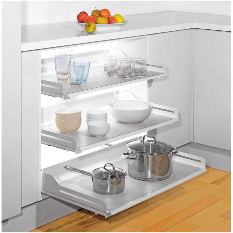 Ces tablettes au design contemporain s’adaptent à tous les environnements :Cuisine, Dressing, Salle de bain, ou Bureau. Le choix des coulisses et des accessoires permettent une personnalisation adaptée aux besoins de chaque utilisateur.La forme arrondie des corbeilles en fine tôle d’acier et leurs angles ouverts offrent un rangement optimum jusqu’au bord le plus extérieur du meuble et permettent un nettoyage aisé.Ces tablettes s’adaptent sur les coulisses invisibles toutes versions (sortie partielle, totale, inversées, avec ou sans amortisseurs…) de toutes marques : Hettich, Salice…Livrée avec adaptateurs pour coulisses longueur 450 mm.Livrée sans coulisses.