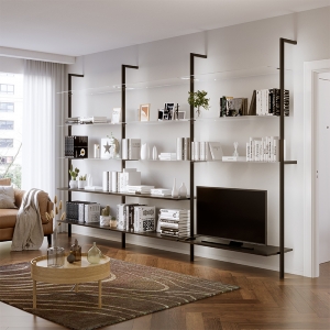 Tablette adaptable sur les profils Ellipse.Structure en aluminium décor noir + verre gris foncé avec support muni d'adhésif.