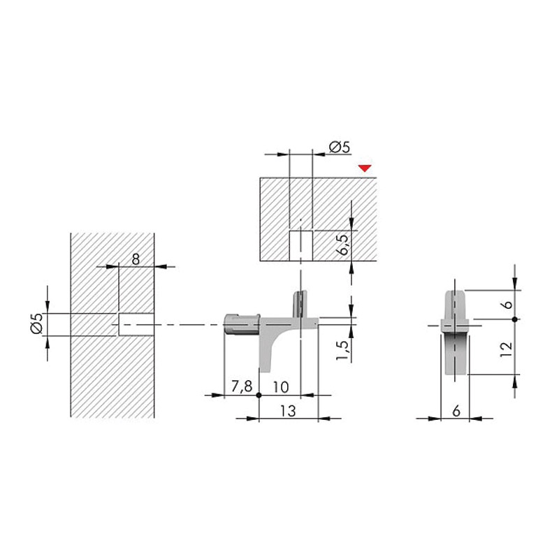 Taquet 2 tourillons Ø 5mm