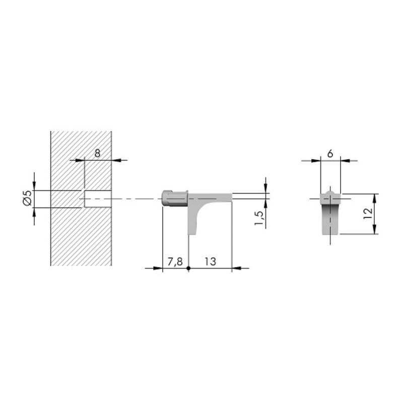 Taquet 1 tourillon Ø 5mm