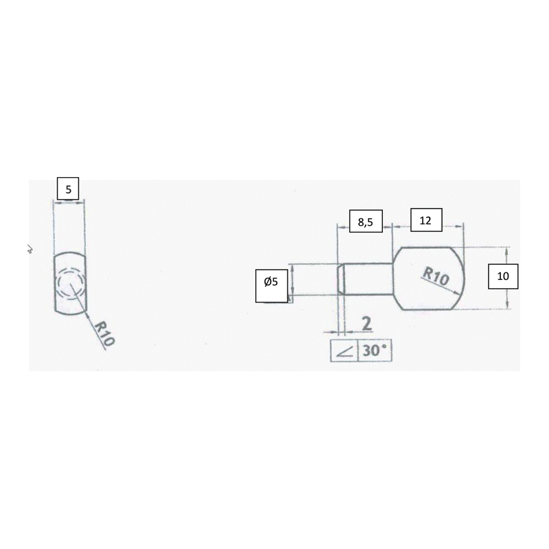 Taquet laiton lisse queue Ø 5mm.Tolérance du Ø queue de 5 : +0,03/-0,05mm.Générale tolérance : +/-0,1mm.