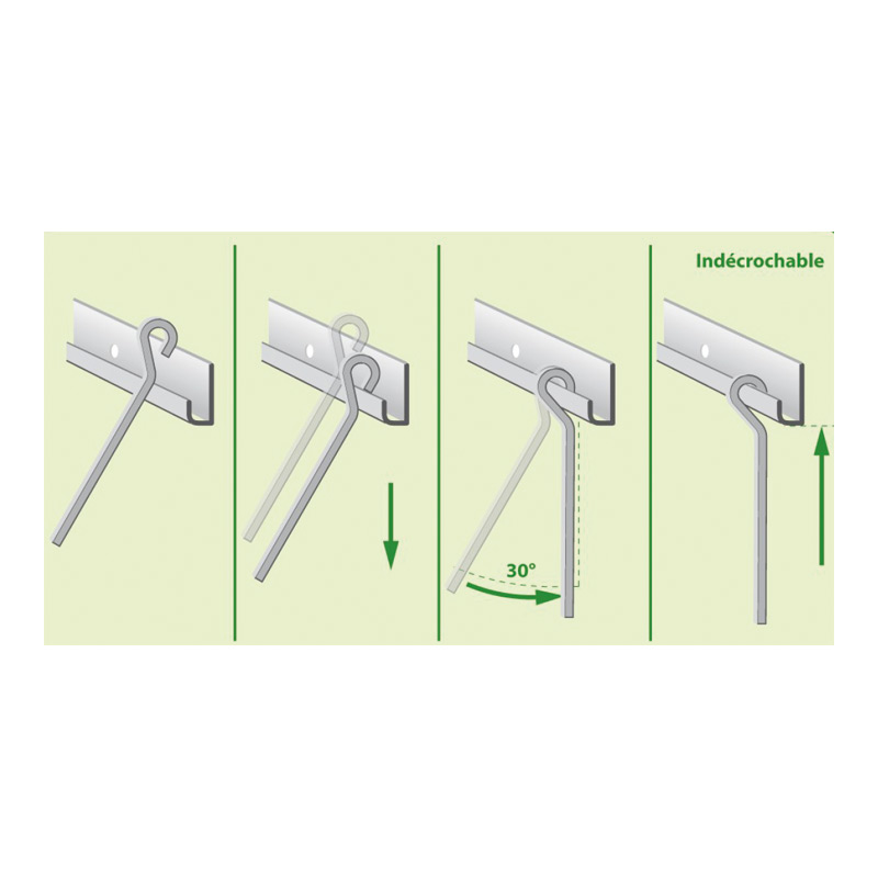 Tige crosse qui rend impossible tout décrochage.