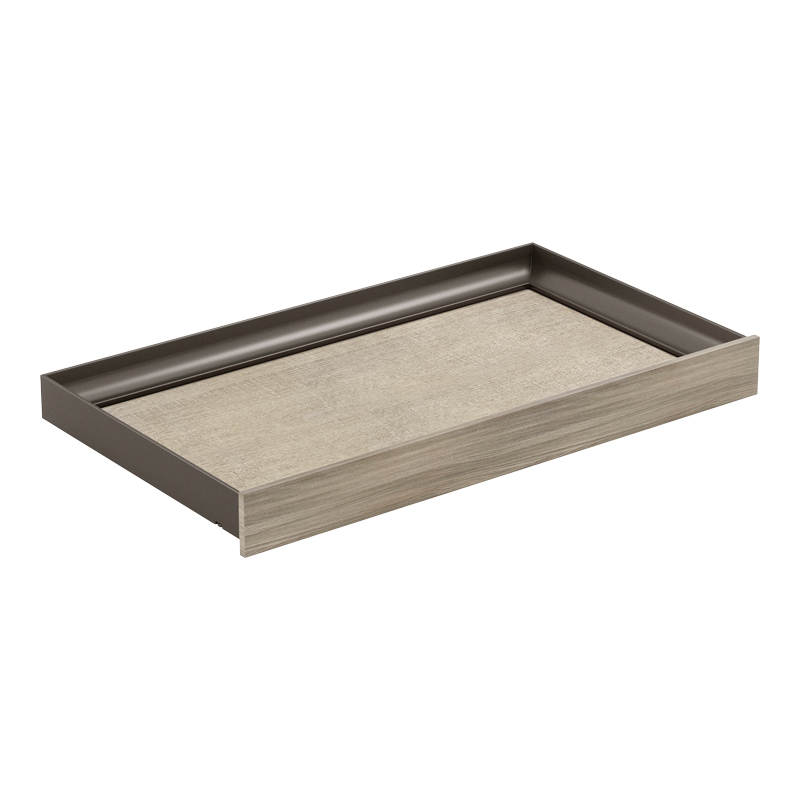 Tiroir Excessories 3 côtés sur mesure. Façade en bois ht.100mm (non fournie) - support façade bois à commander séparément.ou façade en verre ht.100 mm à commander séparément