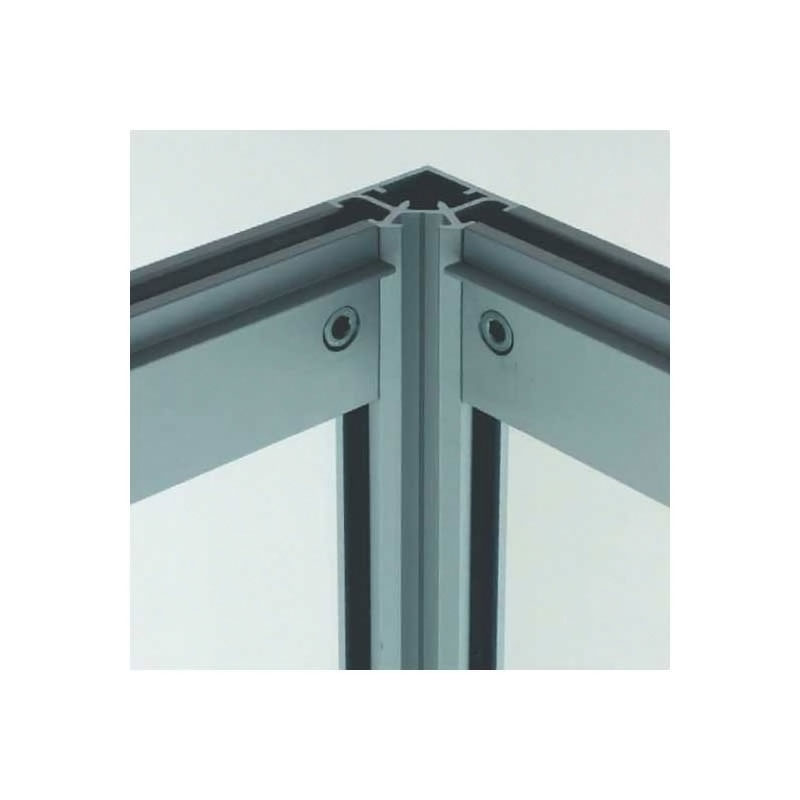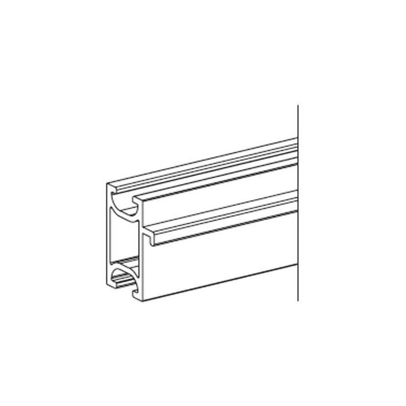 Profilé avec une aile support latéral pour pose d'une tablette bois ou verre d'épaisseur 8mm, utilisé pour faire une liaison entre deux montants de vitrine.Fréquemment utilisé pour séparer un élément de vitrine en deux parties (par exemple : haut vitré et bas plein).La liaison avec les montants se fait avec des pinces d’assemblage.
