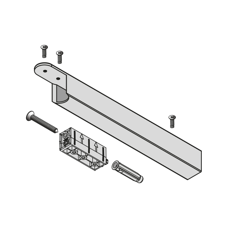 Dans un montage sol/mur, cette traverse permet de raccorder le profil vertical fermé Ellipse au mur par le haut.Livré avec vis de fixation.