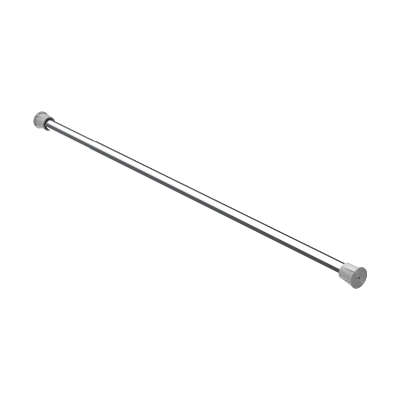 Tube extensible en acier chromé à fixations latérales.Naissances en nylon renforcé par fibre de verre, décor gris alu.