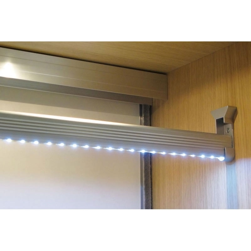 Kit comprenant :- 1 tube de penderie avec rainure latérale pouvant être habillée par un chant mince largeur 23 mm et avec un joint antibruit gris en partie supérieure.- 2 supports d’extrémités- Les vis de fixation