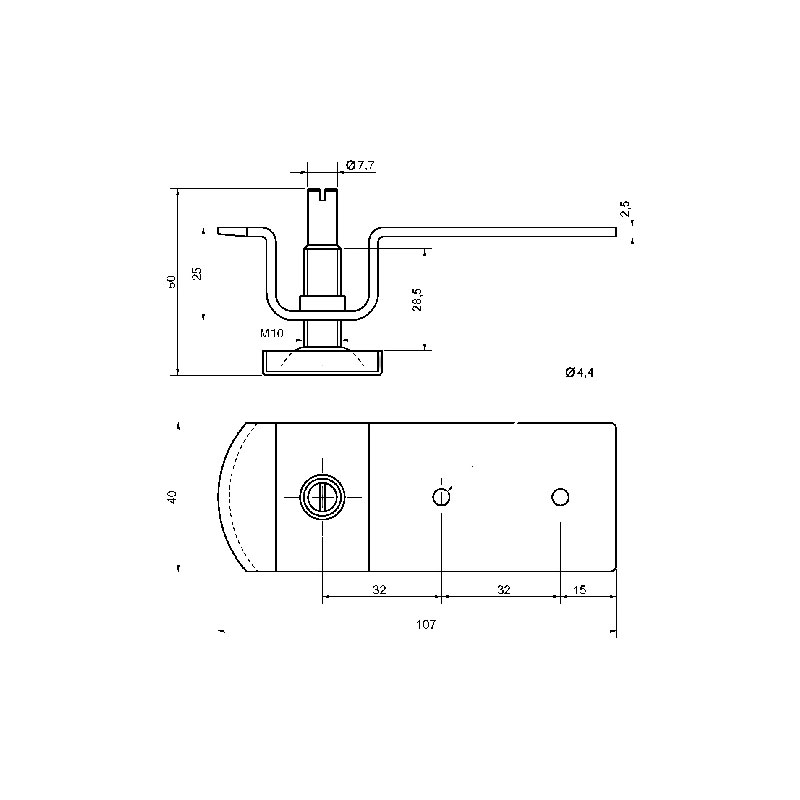 Vérin acier zingué avec vis.