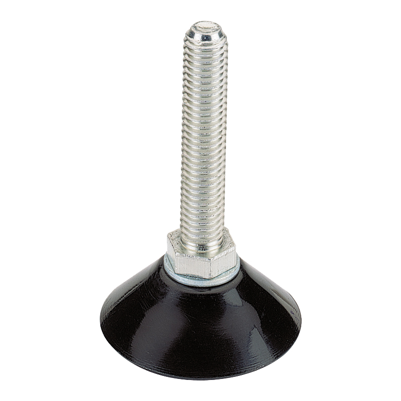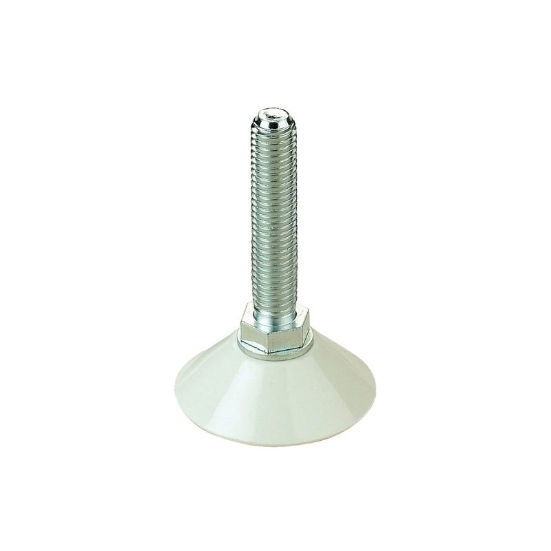 Vérin réglable avec filet M10, pour régler la hauteur d'une colonne ou montant d'agencement.Embase plastique Ø46 mm, course de réglage de 45 mm.