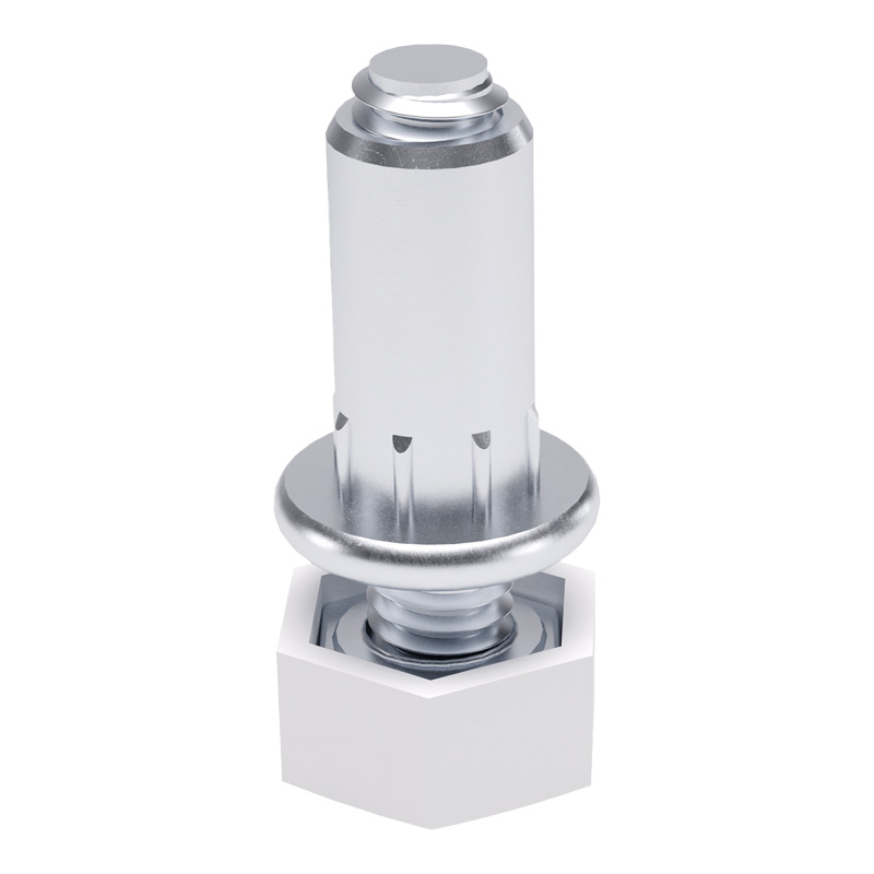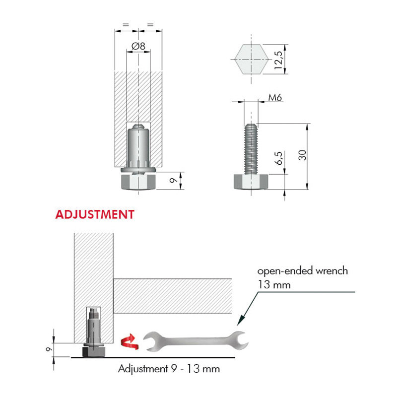 Vérin acier zingué à encastrer.Capuchon plastique blanc.Perçage Ø 8mm.