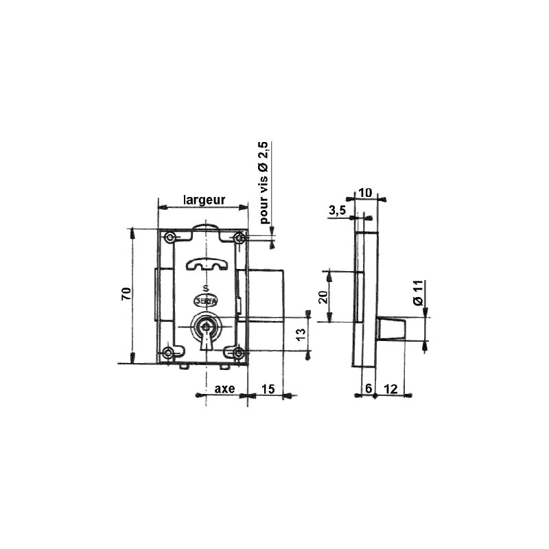 Canon fer, longueur 12 mm, 2 tours de clé.