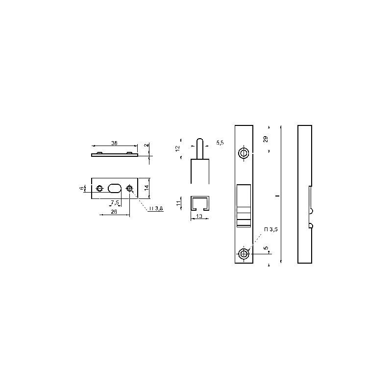 Verrou vertical.Section 11 x 13mm.Livré avec gâche plate.