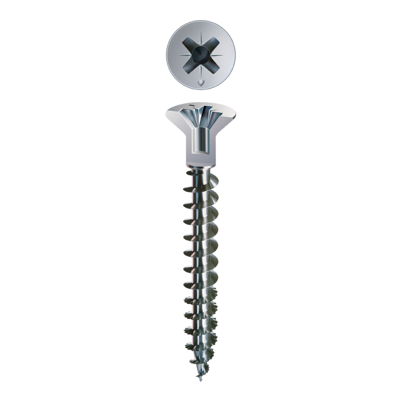 "Filet ondulé" breveté jusqu'à la pointe, pour un vissage rapide et sûr.